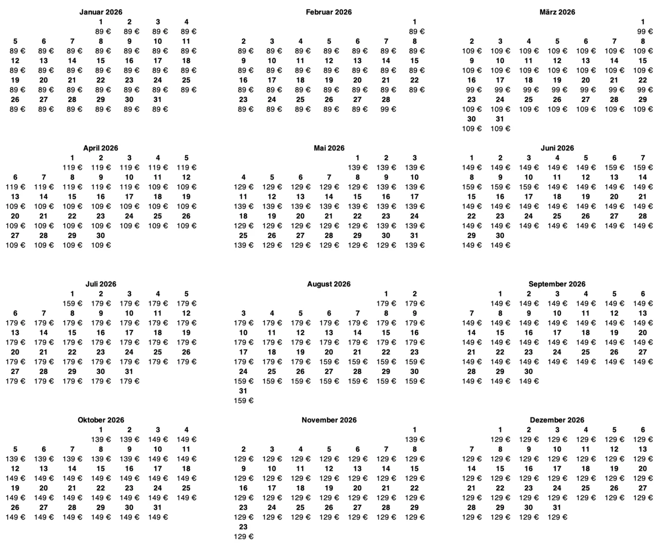 Preise und Mindestmietdauer